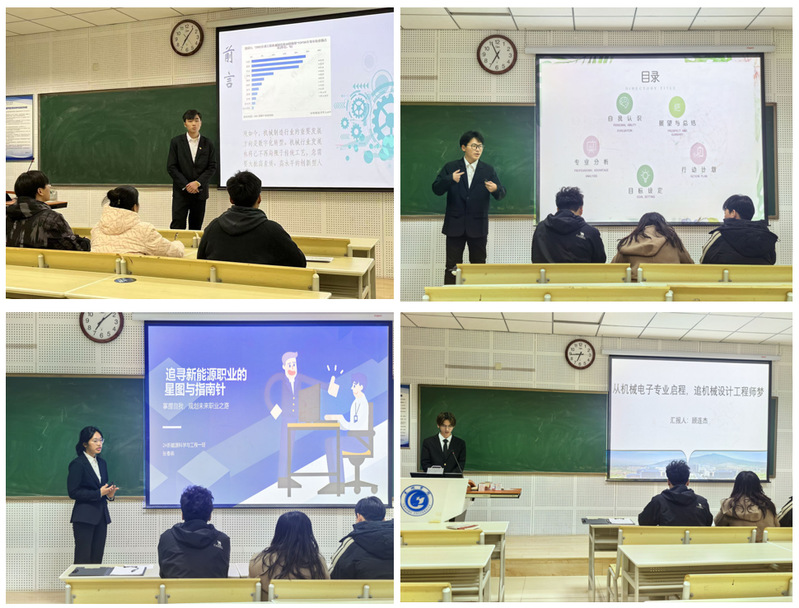 学院高度重视,在赛前落实赛事宣传工作,通过多种渠道、多种方式广泛发动学生积极报名参赛。大学生职业规划大赛设“成长赛道”与“就业赛道”两大板块,分别考查学生的生涯发展理念和求职实战能力。各参赛选手依次上台,用PPT陈述自己的职业规划。评委们从职业规划的合理性、可行性、创新性等多个维度进行了综合评分。经过激烈角逐,最终在成长、就业两个赛道分别遴选出23级机自1班董昱昊、21级机自1班沈李祥进入校级决赛。