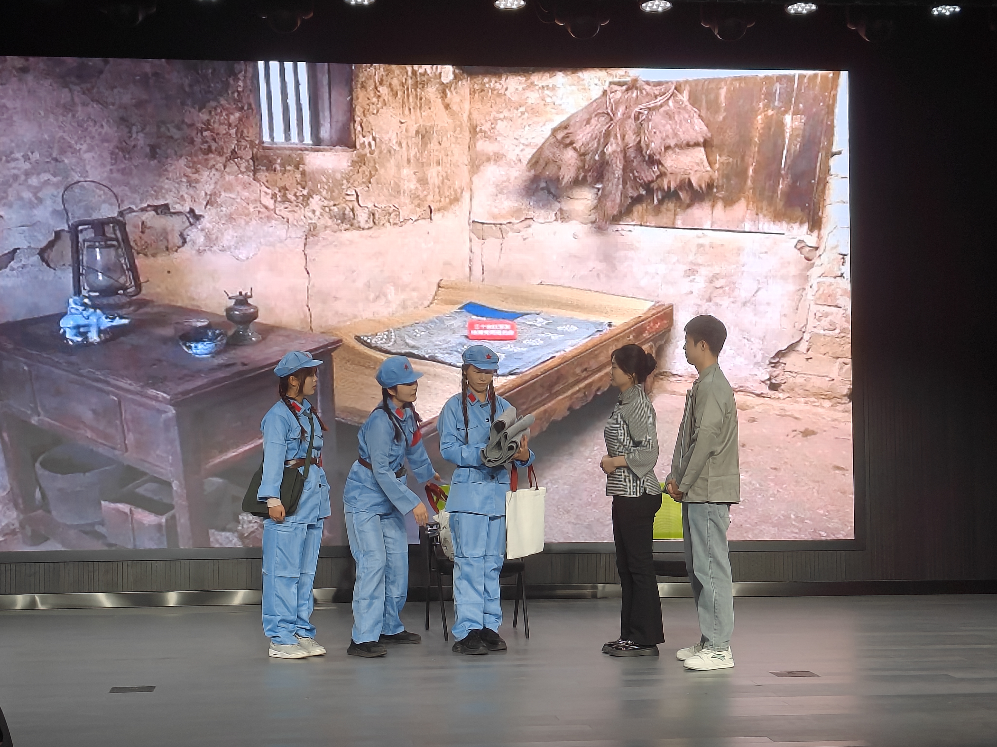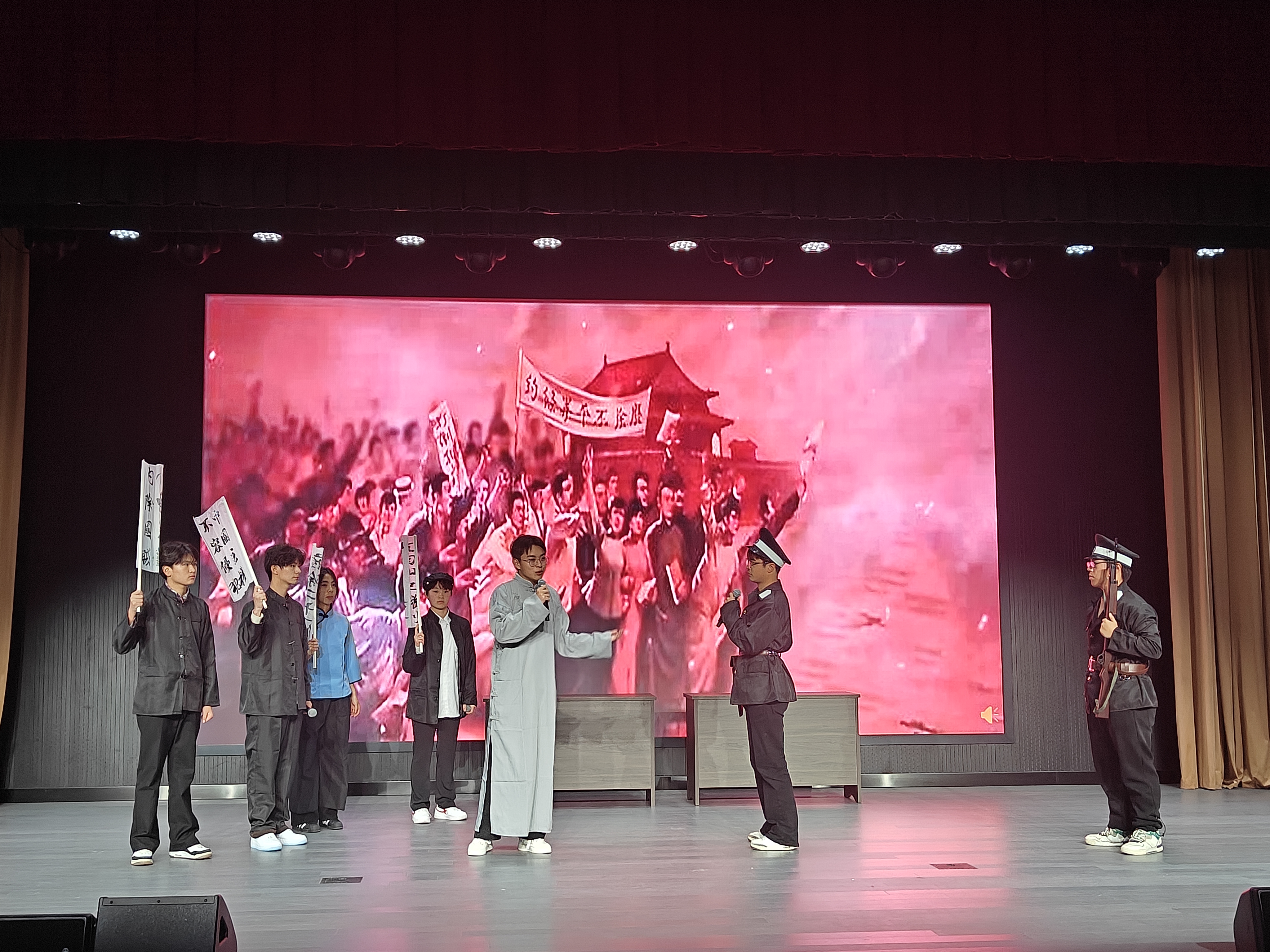 在短剧比赛环节,24级旅管3班的《青春中国》通过“过去”与“现在”的对比,展现了当代青年与祖国共成长的担当与自豪;24级酒管专升本1班《半条被子的故事》演绎了军民鱼水情;24级旅管1班表演的《巢湖岸边的烽火岁月》描绘巢湖地区革命烽火传递爱国精神。演员们全心投入,以生动的表演传递爱国情怀,让观众深受触动。