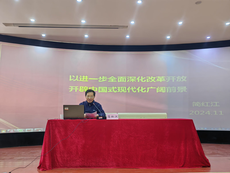 开班典礼结束后,马克思主义学院教授简红江以“以进一步全面深化改革开放 开辟中国式现代化广阔前景”为题,为学员带来了一场党的二十届三中全会精神宣讲活动。(文/高媛媛 图/张俊杰、贾世纪 初审/邓其志 终审/洪作奎 发布/崔苏如)