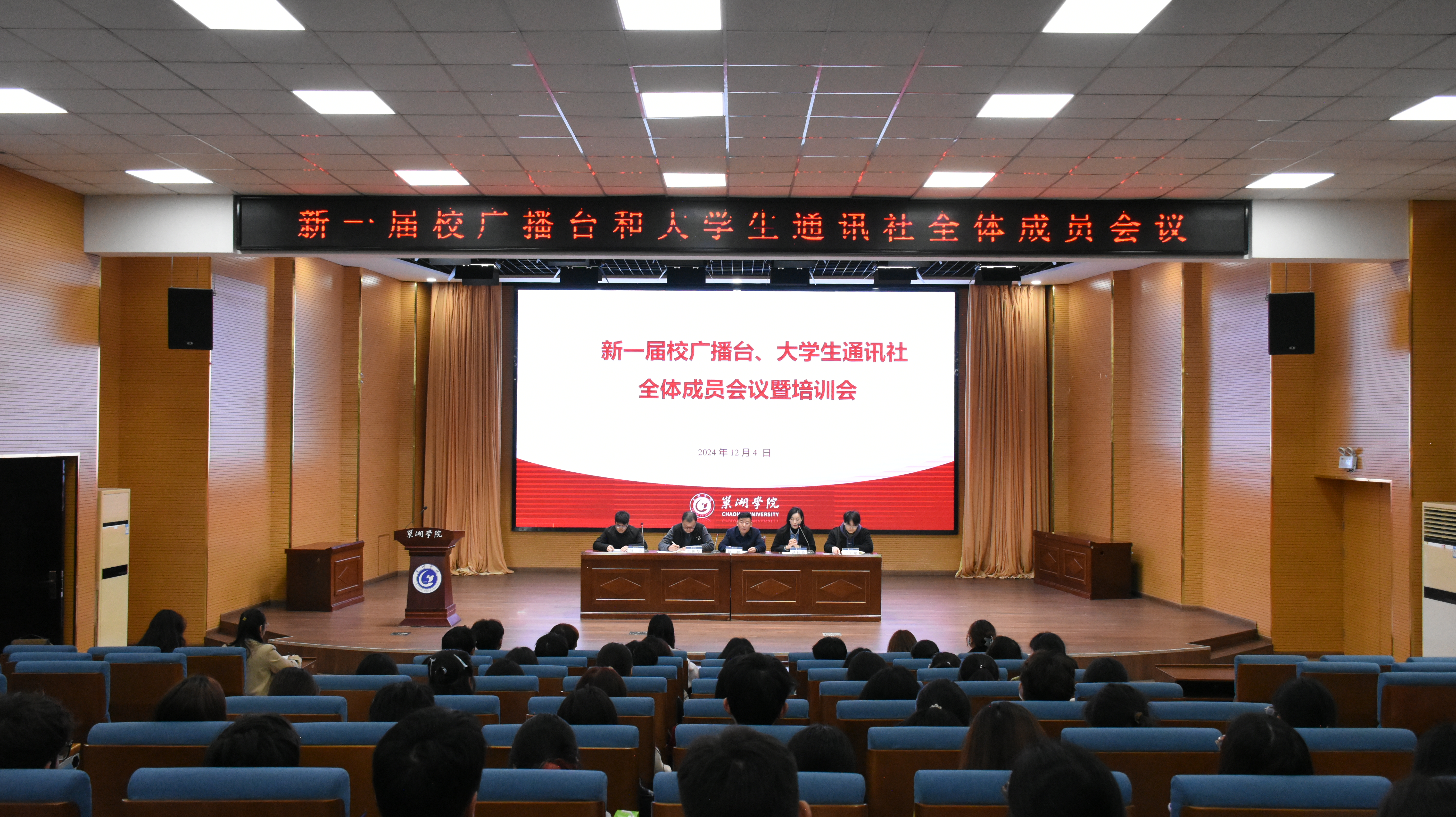 12月4日中午,党委宣传部在求实楼报告厅举办新一届广播台和大学生通讯社全体成员培训会。党委宣传部副部长郭超、党委宣传部新闻宣传科科长樊振华、党委宣传部理论文化科科长汤玲玲和校广播台、大学生通讯社全体成员参加会议。