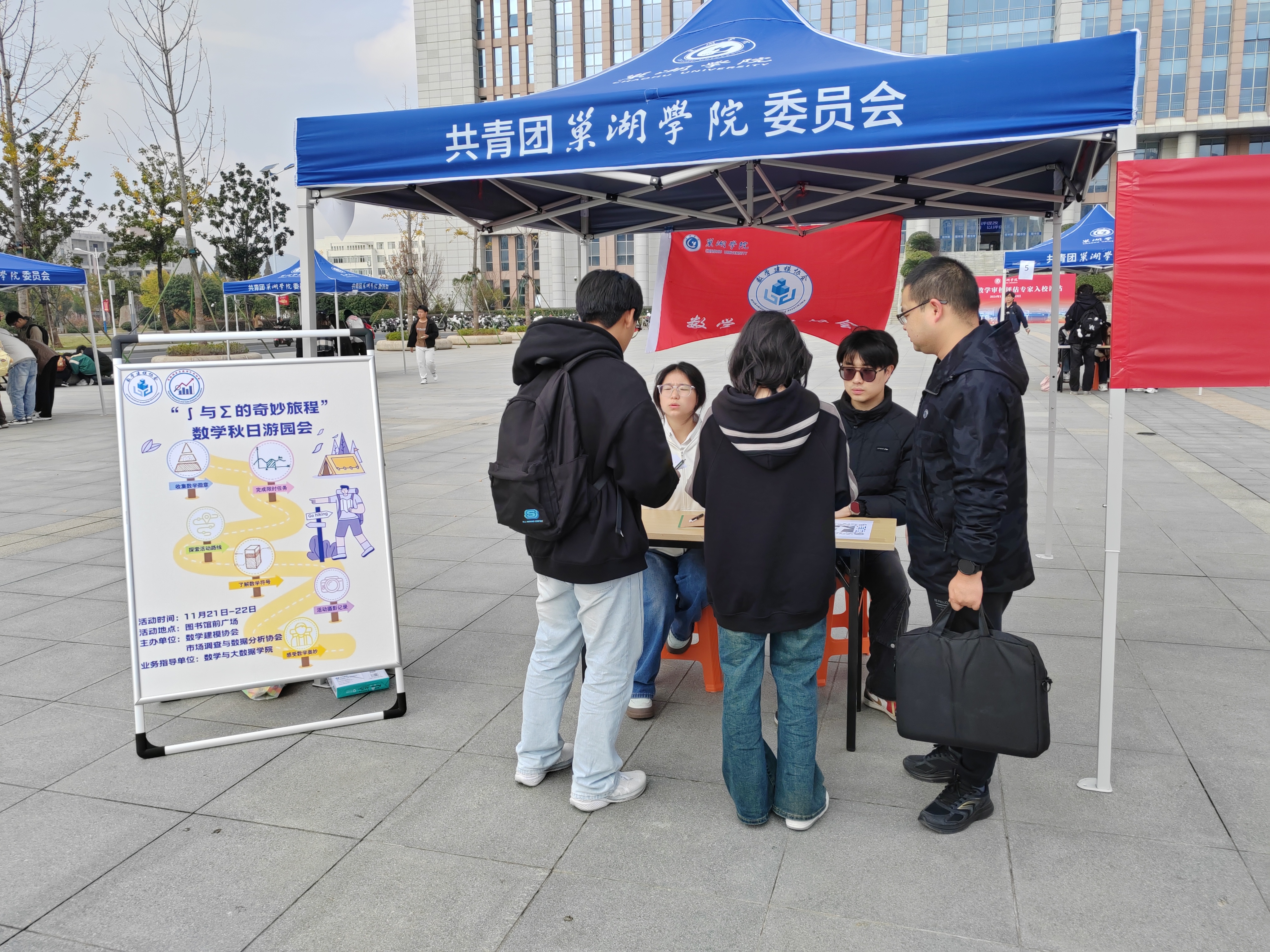 为了进一步培育数学文化的浓厚氛围,充分展现数学的趣味性与魅力,数学与大数据学院于11月21日至22日在图书馆南广场举办以“∫与Σ的奇妙旅程”为主题的秋日游园会,此次活动由数学建模协会、市场调查与数据分析协会承办,数学与大数据学院学生会协办,此次游园会吸引了超过2200名同学参与。
